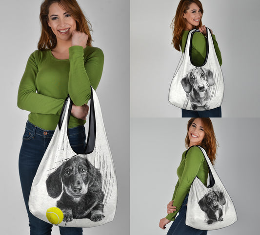 Dachshund (Doxie) Pencil Sketch Artwork Grocery Bags (3pcs)