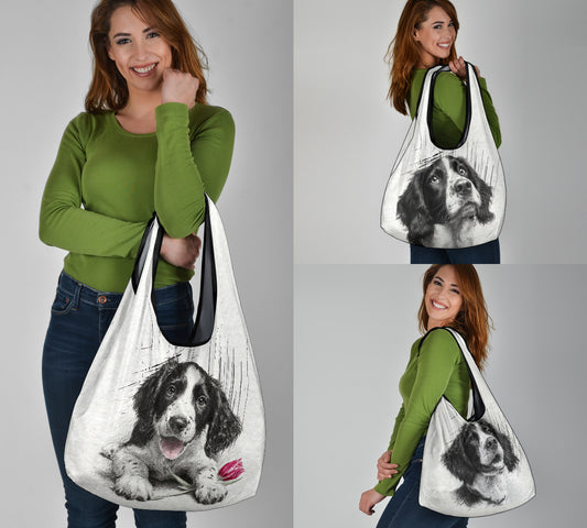English Springer Spaniel Pencil Sketch Artwork Grocery Bags (3pcs)