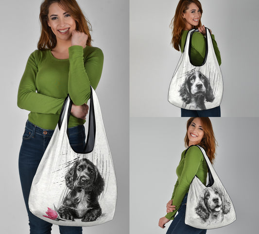 Cocker Spaniel Pencil Sketch Artwork Grocery Bags (3pcs)