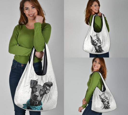 Doberman Pencil Sketch Artwork Grocery Bags (3pcs)
