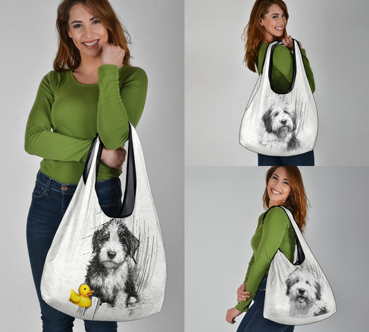 English Sheepdog Pencil Sketch Artwork Grocery Bags (3pcs)