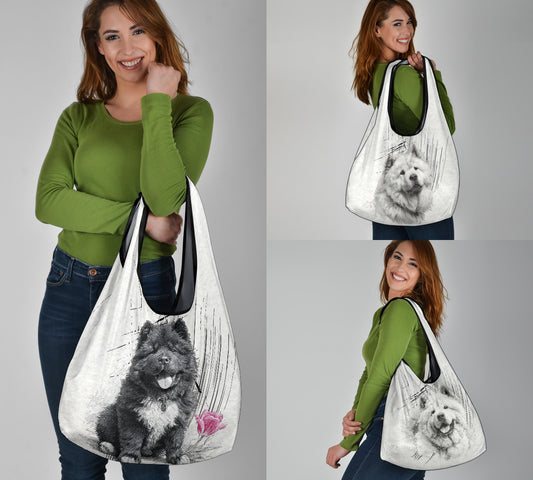 Chow Chow Pencil Sketch Artwork Grocery Bags (3pcs)