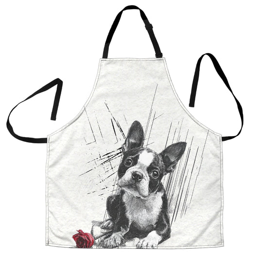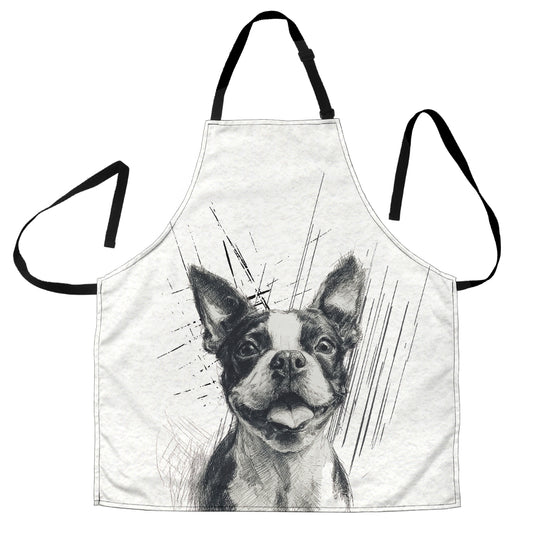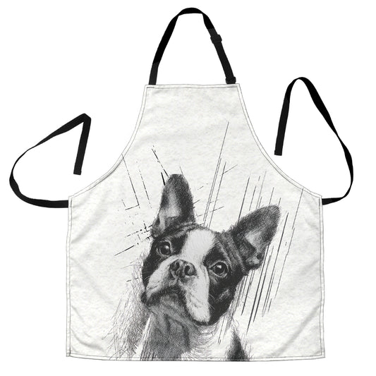 Boston Terrier Pencil Sketch Artwork Apron