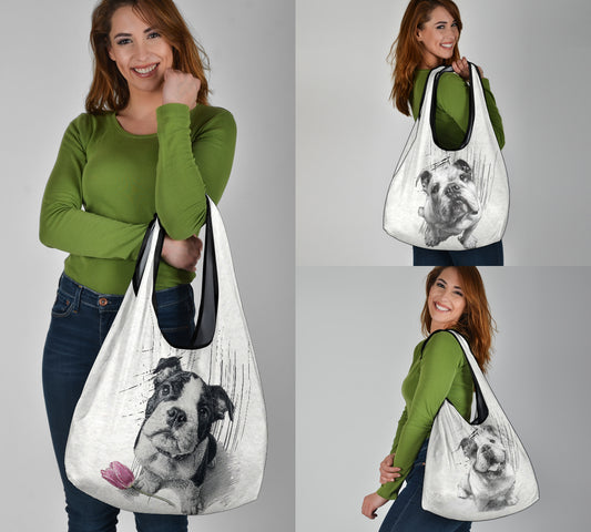 Bulldog Pencil Sketch Artwork Grocery Bags (3pcs)