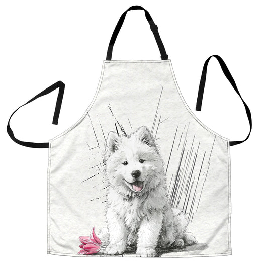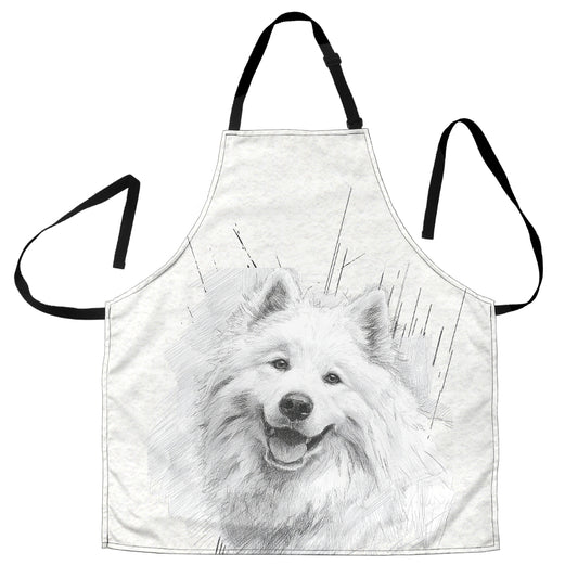 Samoyed Pencil Sketch Artwork Apron