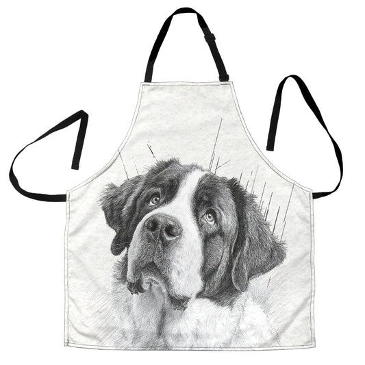 Saint Bernard Pencil Sketch Artwork Apron