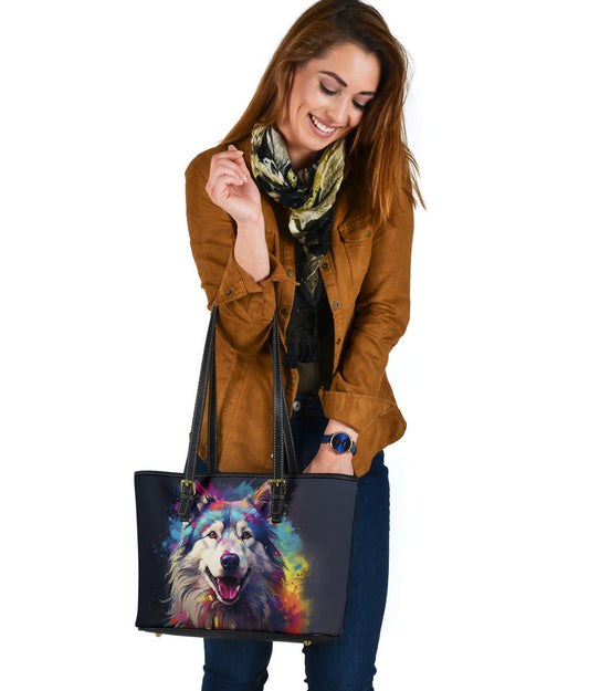 Alaskan Malamute Small Faux Leather Tote Featuring Art in a Neo-Pop Art Style