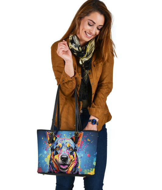Australian Cattle Dog | Blue Heeler Small Faux Leather Tote Featuring Art in a Neo-Pop Art Style