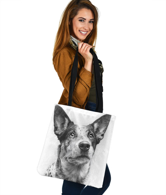 Australian Cattle Dog | Blue Heeler Pencil Sketch Artwork Tote Bags