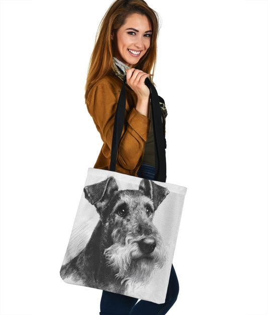 Airedale Terrier Pencil Sketch Artwork Tote Bags