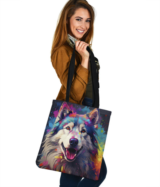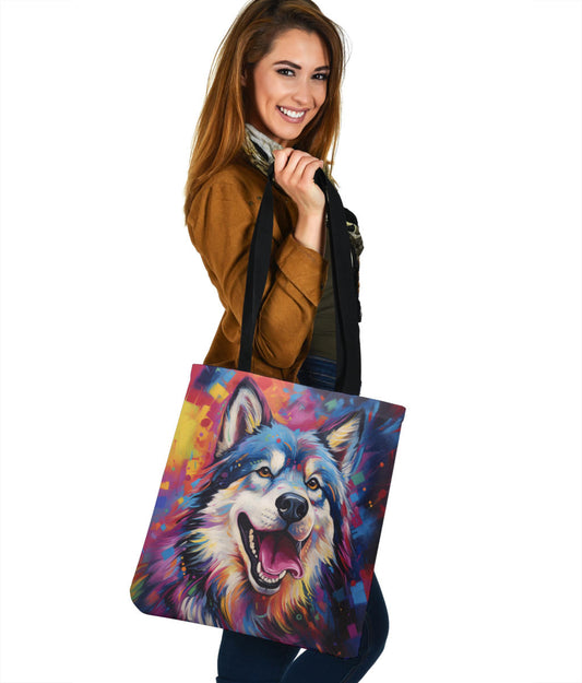Alaskan Malamute Tote Bag Featuring Art in a Neo-Pop Art Style