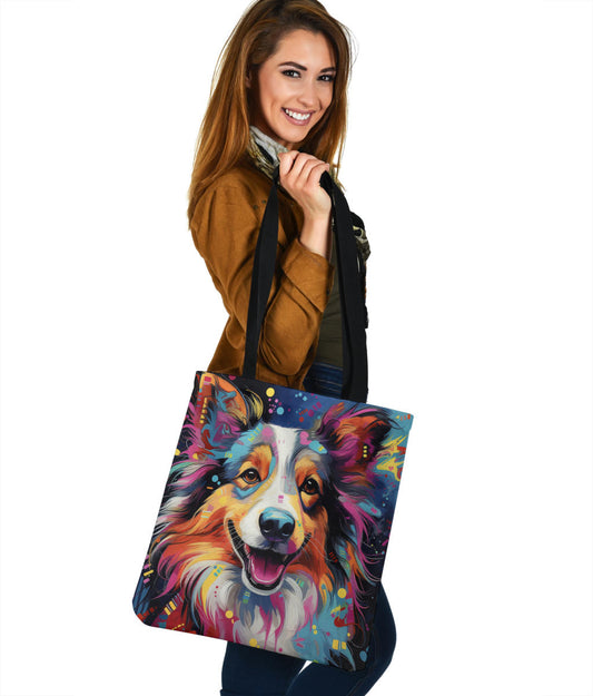 Shetland Sheepdog (Sheltie) Tote Bag Featuring Art in a Neo-Pop Art Style