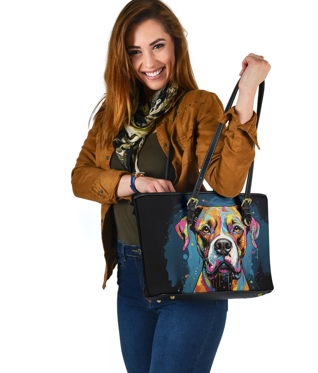 Boxer Small Faux Leather Tote Featuring Art in a Neo-Pop Art Style