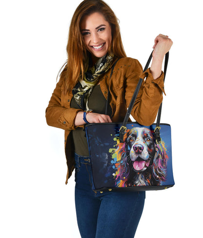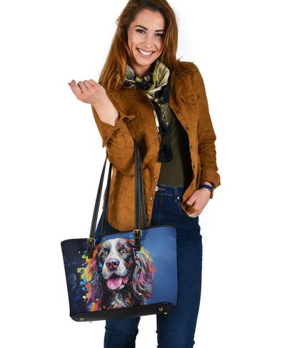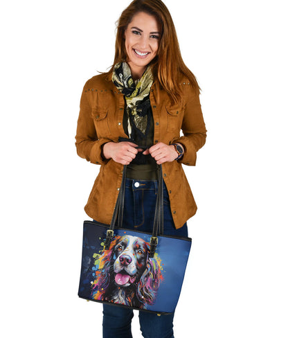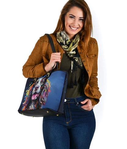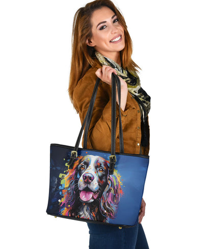 English Springer Spaniel Small Faux Leather Tote Featuring Art in a Neo-Pop Art Style