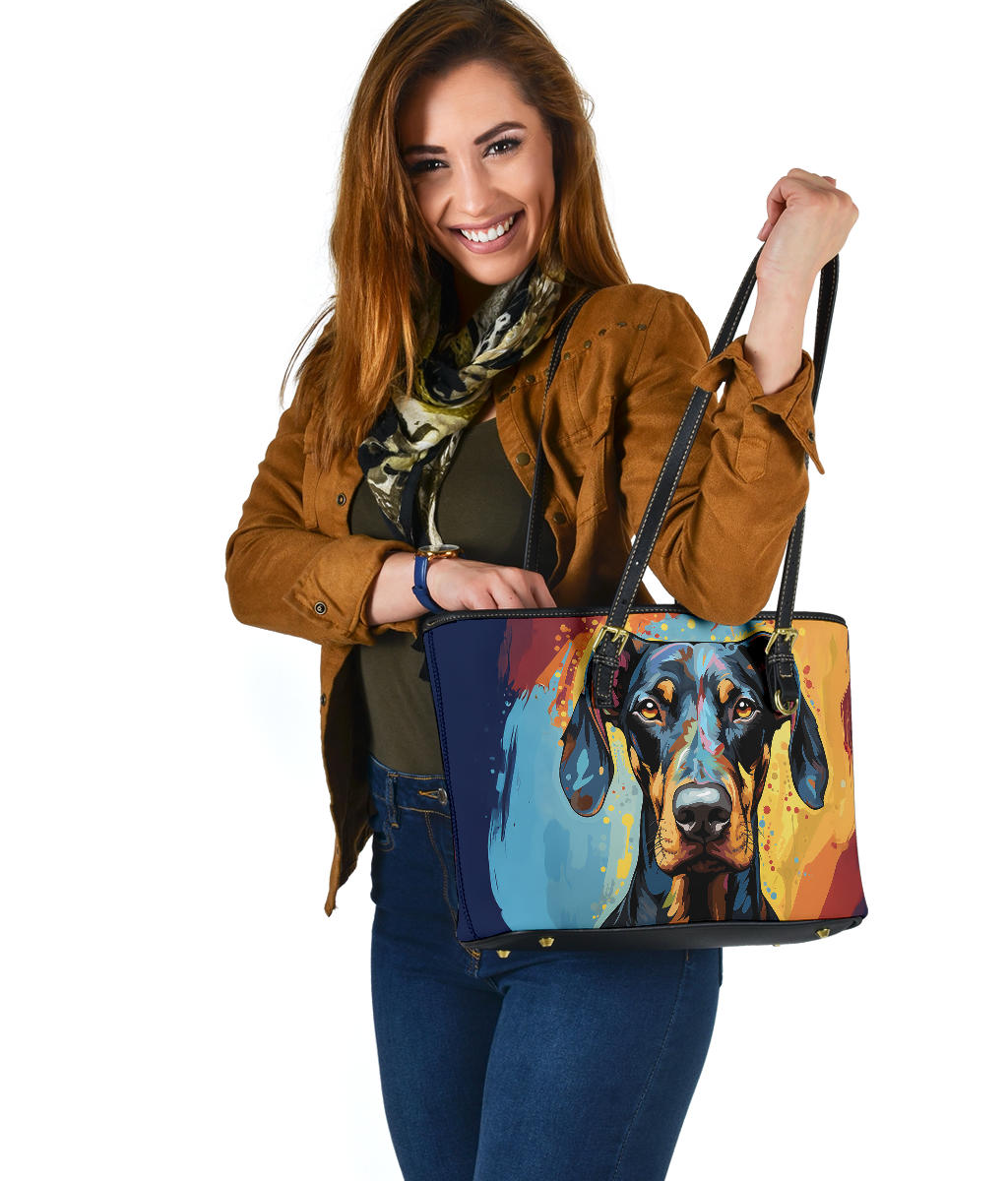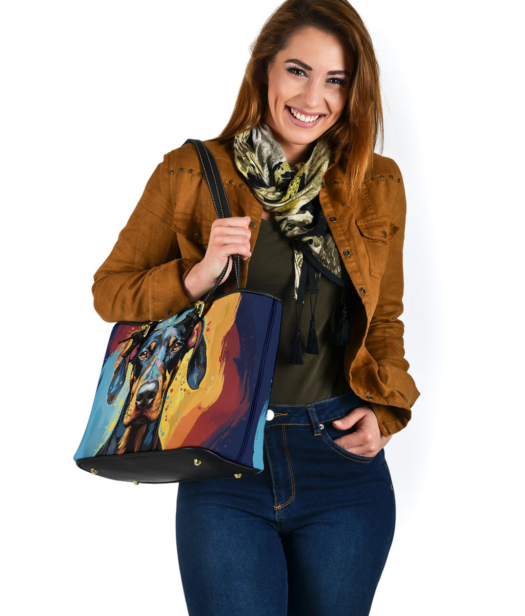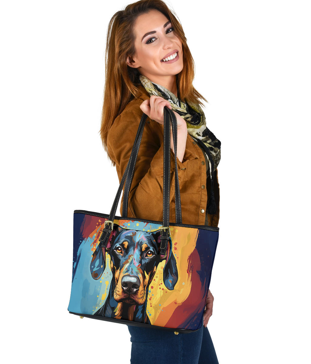 Doberman Small Faux Leather Tote Featuring Art in a Neo-Pop Art Style